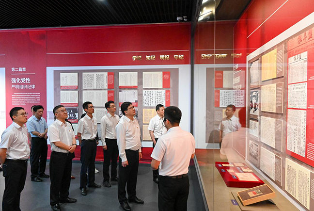 6月20日下午,鹽城國投集團黨委書(shū)記、董事長(cháng)張林海帶領(lǐng)集團領(lǐng)導班子成員赴新四軍紀念館,參觀(guān)“弘揚鐵軍傳統 強化使命擔當——新四軍紀律建設專(zhuān)題展”。