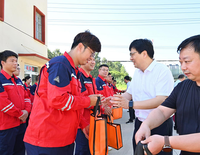 在城燃公司倉頭場(chǎng)站,張林海慰問(wèn)了高溫作業(yè)的一線(xiàn)職工,對他們不畏高溫、堅守崗位的精神給予充分肯定,并詳細了解近期工作開(kāi)展情況,為職工送上防暑降溫物資,叮囑他們加強自我防護,注意勞逸結合,時(shí)刻繃緊“安全弦”,做好日常巡檢維護,保障群眾安全穩定用氣。