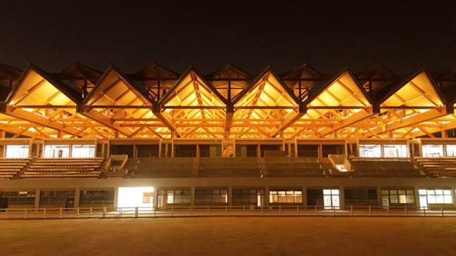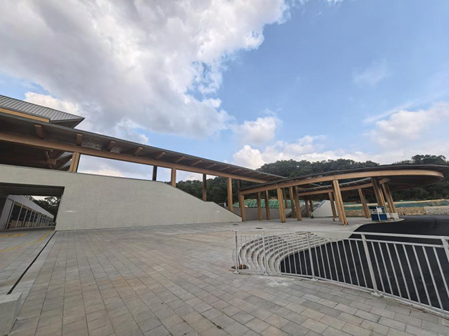 光明國際馬術(shù)中心的主場(chǎng)館以“木構新境、眾檐共景”為核心設計概念,整體采用膠合木結構。蘇州昆侖綠建在參與設計過(guò)程中,巧妙地將傳統木構的榫卯工藝與現代膠合木技術(shù)結合,既延續了千年木構技藝的匠心精髓,又賦予了建筑輕盈通透的現代美感,為場(chǎng)館的穩固性與藝術(shù)性提供專(zhuān)業(yè)保障。
