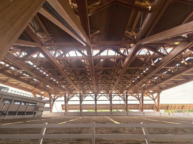 作為國內領(lǐng)先的木結構設計公司,蘇州昆侖綠建在光明國際馬術(shù)中心項目中,充分發(fā)揮了木結構的環(huán)保、可持續性等價(jià)值。
