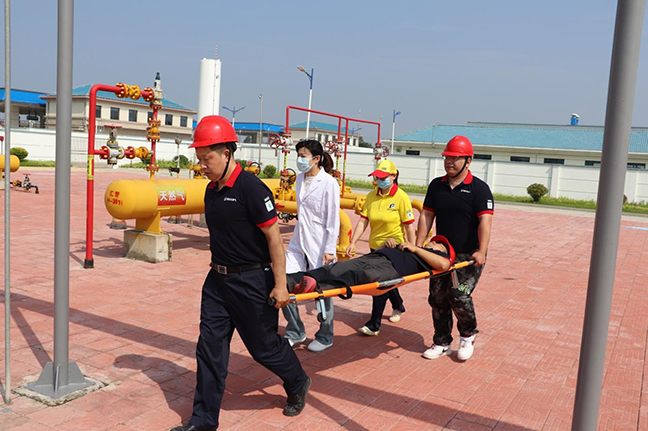 演練共分四大項內容,包括模擬天然氣泄漏導致操作人員中毒的急救和護理;模擬天然氣匯管區管道法蘭泄漏引發(fā)火災的應急處理;模擬加油站汽柴油泄漏導致火災的應急處理;開(kāi)展全員應急逃生疏散演練。整個(gè)演練過(guò)程中,大家響應快速、配合密切,各個(gè)環(huán)節銜接有序,險情排除及時(shí),進(jìn)一步驗證了事故處置方案的科學(xué)性、合理性和可行性,達到了預期的效果。
