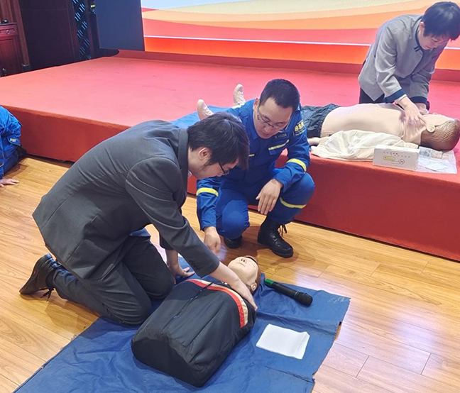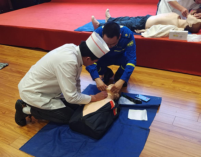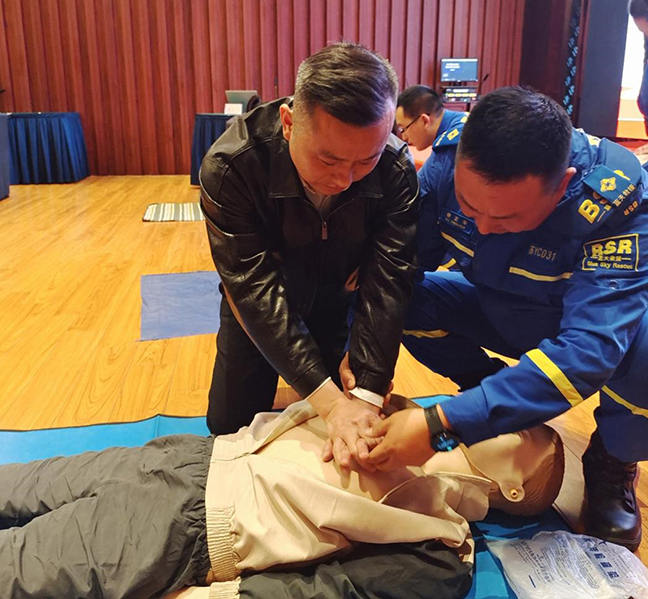 本次培訓采取理論講解與實(shí)際操作相結合的方式。宣講員用通俗易懂的語(yǔ)言向大家介紹了學(xué)習急救知識的必要性、正確的急救步驟和施救措施等相關(guān)知識。在實(shí)操環(huán)節,藍天救援隊的同志們通過(guò)模擬演練、一對一指導等形式,重點(diǎn)講解和演示了心肺復蘇術(shù)、海姆立克急救法、創(chuàng )傷處理等急救措施的規范操作。參訓人員認真聆聽(tīng)講解,并積極進(jìn)行實(shí)操練習,逐步掌握了正確操作方法。