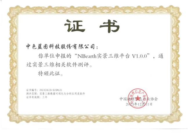 日前,中國地理信息產(chǎn)業(yè)協(xié)會(huì )發(fā)布了實(shí)景三維相關(guān)軟件測評結果,由中色藍圖公司自主研發(fā)的“NBearth實(shí)景三維平臺”順利通過(guò)實(shí)景三維相關(guān)軟件測評。
