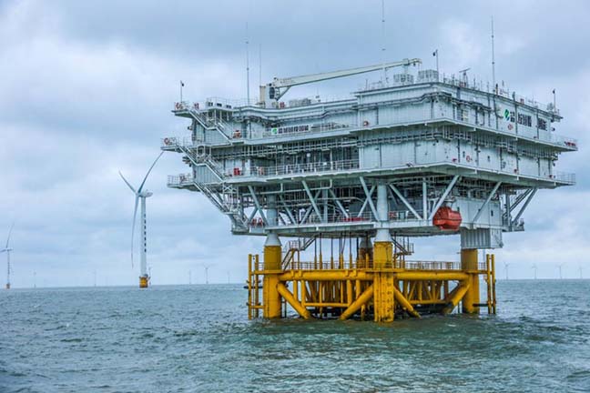 國能大豐H5#海上風(fēng)電場(chǎng)項目由32臺GW184-6.45MW智能海上風(fēng)電機組構成,坐落于大豐港水域港界之外,太平沙北側,輻射沙洲北端,其場(chǎng)區中心距離海岸約67公里。