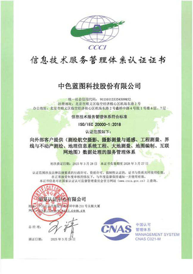此次體系認證的通過(guò),標志著(zhù)中色藍圖已經(jīng)建立了標準化、規范化、系統化的信息技術(shù)服務(wù)管理體系,將持續向外部客戶(hù)提供高質(zhì)量、高效率地理信息技術(shù)服務(wù)及軟件服務(wù),為集團高質(zhì)量發(fā)展注入強勁動(dòng)能,為行業(yè)高標準建設做出更大貢獻!