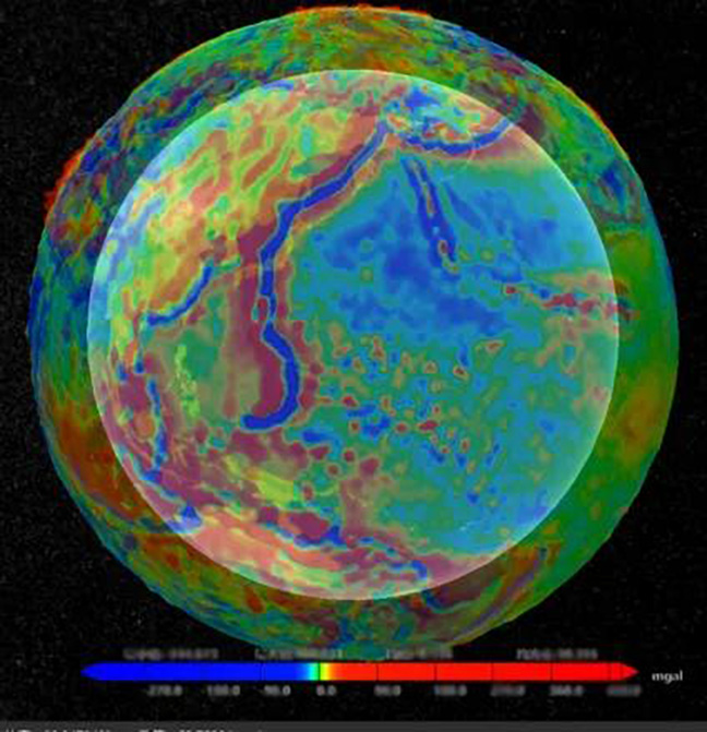 哪里重力強,哪里的紅色就越深,哪里重力弱,哪里的藍色就越深,一目了然!效果堪比給地球做了個(gè)“重力版熱成像”!
