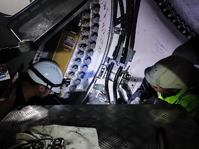 面對復雜海況,運維團隊同步完成多項關(guān)鍵作業(yè):對#01、#04風(fēng)機蓄能器支架實(shí)施技改以提升設備穩定性;快速處理#19風(fēng)機偏航液壓站缺陷以恢復風(fēng)機運行;在顛簸的船上和高空機艙內,團隊將“精益運維”落實(shí)到每個(gè)細節。