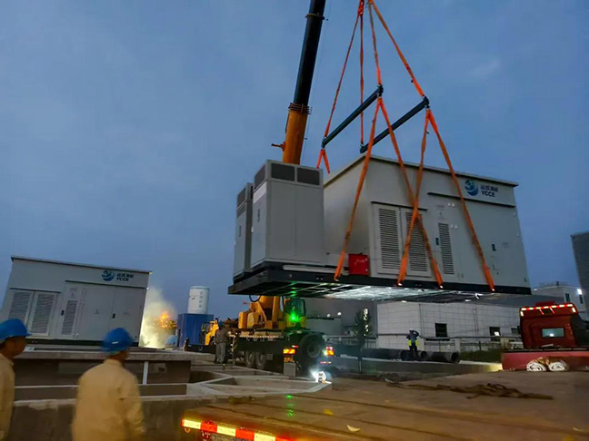 設備安裝調試并進(jìn):設備調試單位國電南瑞公司供貨的二次設備艙、蓄電池艙等核心設備陸續到位,總包單位江蘇怡寧能源公司團隊同步開(kāi)展直流電纜敷設與設備接線(xiàn),設計單位鹽城電力設計院駐場(chǎng)團隊實(shí)時(shí)優(yōu)化二次系統方案,確保設備聯(lián)調精準高效。