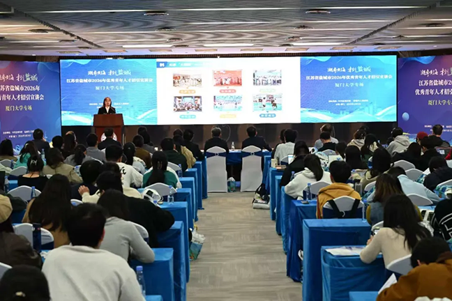 奔涌的黃海氣象萬(wàn)千,奮進(jìn)的鹽城求賢若渴。在我市成功舉辦2025江蘇·鹽城沿海人才發(fā)展大會(huì ),向海內外青年人才發(fā)出誠摯邀約后,近日,鹽城市優(yōu)秀青年人才專(zhuān)場(chǎng)推介活動(dòng)走進(jìn)廈門(mén)大學(xué),以最大誠意、最優(yōu)政策、最佳服務(wù),上門(mén)招引各類(lèi)優(yōu)秀人才,推動(dòng)城市和人才雙向奔赴、相互成就。鹽城市委書(shū)記周斌參加宣講。