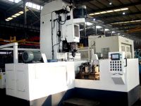 主減速器殼三軸鏜孔車(chē)端面機床,本機床是為粗加工、半精加工主減速器殼三孔及車(chē)削主減速器殼主錐端面而設計的專(zhuān)用機床。本機床采用立臥復合式三面結構,左右端各布滑臺和鏜頭,用于兩端孔的加工。立頭采用西德標準的DSS系列雙向刀盤(pán)鏜車(chē)頭,用于主錐端面孔加工,鏜車(chē)頭主電機采用變頻調速,以滿(mǎn)足鏜大小孔時(shí)切削速度的變化。中間采用數控滑臺,滑臺上安裝液壓夾具,以適應不同品種的偏置距。
