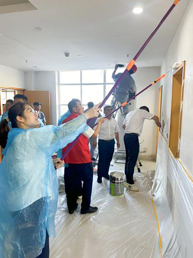 集團總部第二黨支部與國投物業(yè)公司黨支部來(lái)到市兒童福利院,以“不忘初心、牢記使命,爭當先鋒模范”為主題,開(kāi)展零星維修、墻面翻新活動(dòng)。為確?;顒?dòng)的順利進(jìn)行,黨員們提前與福利院取得聯(lián)系、了解需求,并制定了詳細的修補方案。盡管天氣炎熱,黨員們的熱情卻絲毫未減,大家分工明確,搬運涂料工具,仔細粉刷修繕墻壁。參加活動(dòng)的志愿者表示,很開(kāi)心能為福利院的孩子們做些力所能及的事情,給他們營(yíng)造一個(gè)更加舒適、溫馨的居住環(huán)境,用實(shí)際行動(dòng)傳遞愛(ài)心和溫暖。