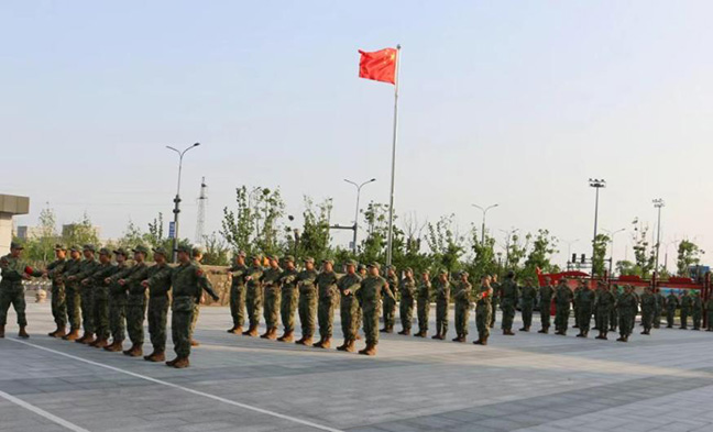 “向前!向前!向前!我們的隊伍向太陽(yáng)……”當日下午17時(shí)許,點(diǎn)驗大會(huì )在雄壯激昂的《中國人民解放軍軍歌》聲中拉開(kāi)帷幕。會(huì )上依次進(jìn)行了宣讀民兵骨干任職命令、出入隊名單,組織點(diǎn)名、集體宣誓、出入隊代表發(fā)言等環(huán)節。點(diǎn)驗結束后,新入隊民兵按照新大綱標準開(kāi)展了軍事訓練。