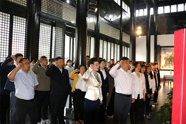 本次活動(dòng)以“踐行‘三個(gè)務(wù)必’ 庚續紅色血脈”為主題?;顒?dòng)中,4個(gè)基層黨組織的黨員干部職工首先來(lái)到新四軍重建軍部舊址(泰山廟),從老照片、文獻、歷史實(shí)物中深入了解當年新四軍在艱苦環(huán)境中浴血奮戰、英勇抗敵的光輝歷程,感受革命先烈們忠貞不渝的愛(ài)國主義情懷。在紀念館大廳,全體黨員面向黨旗重溫入黨誓詞,表達不忘初心、牢記使命的堅定信念。